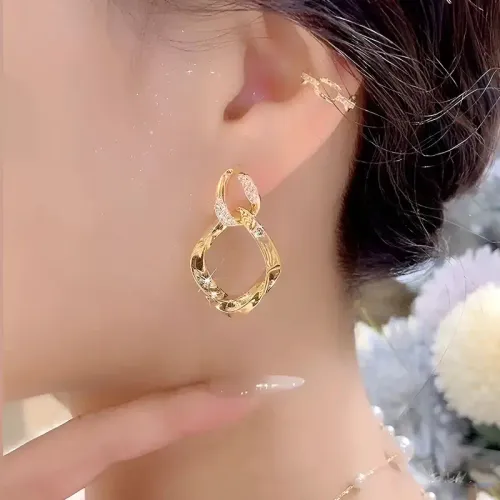 Interlocking Geometric Diamond-shaped Micro-pavé Stud Earrings